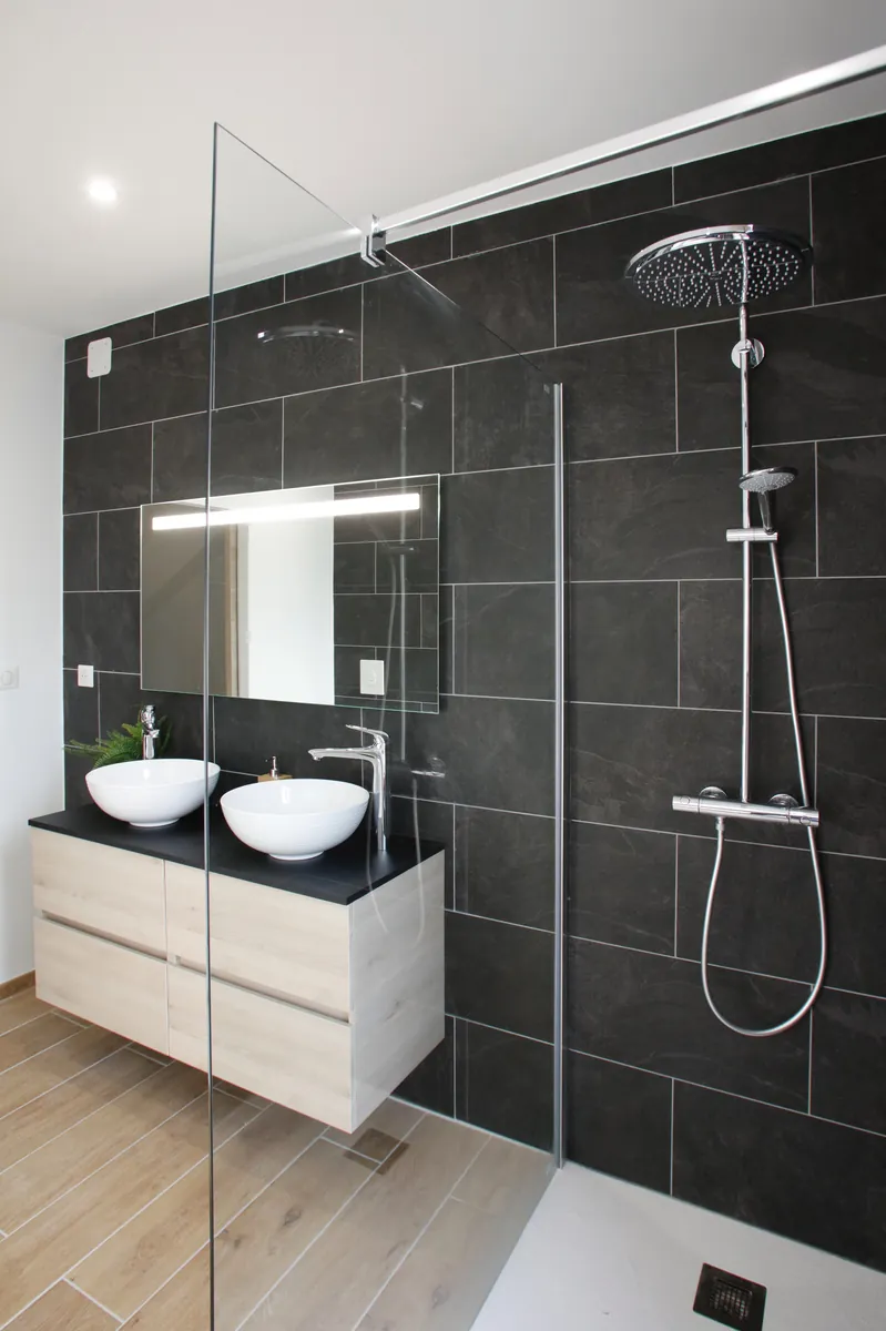 Noir Graphite incarne la sophistication des salles de bain noires. Avec son noir intense et ses finitions raffinées, cette collection de carrelage transforme chaque espace en un lieu design et contemporain. Les carreaux jouent subtilement avec la lumière, révélant des nuances et des reliefs qui apportent profondeur et caractère. Idéal pour les murs comme pour les sols, Noir Graphite associe modernité et élégance intemporelle, créant une atmosphère unique, chic et intimiste.